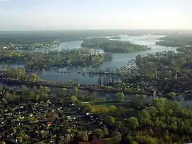 В Тегелер-Зе расположено большое количество островов, которые частично занимают садовые участки.