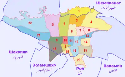 - Tehran, Administrative Districts (недоступная ссылка). Дата обращения: 5 августа 2008. Архивировано 14 октября 2008 года.