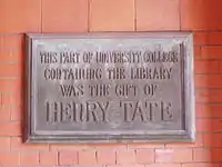 - Генри Тейту установлено много памятных досок, одна из них была открыта в 2001 году на месте его первого магазина по 42-й Гамильтон-стрит в Беркенхеде.