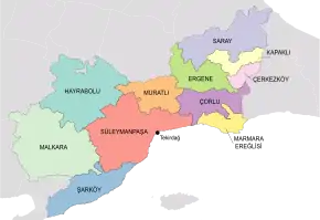 Ил Текирдаг делится на 9 районов: