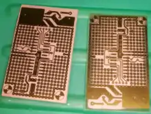 Листовой стеклотекстолит, покрытый медной фольгой, служит основой для изготовления печатных плат.