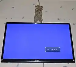 Телевизор, телевизионный приёмник (новолат. televisorium «дальновидец»; от др.-греч. τῆλε «далеко» + лат. vīsio «зрение; видение») — приёмник телевизионных сигналов изображения и звука, отображающий их на экране и с помощью динамиков. Современный телевизор способен принимать телевизионные программы как с антенны, так и непосредственно от устройств их воспроизведения — например, видеомагнитофона, DVD-проигрывателя или медиаплеера. Так называемые смарт-телевизоры могут отображать потоковое видео, получаемое из локальной вычислительной сети или Интернета.