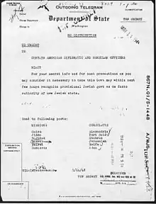 США: телеграмма Государственного департамента о признании де факто Израиля (1948)
