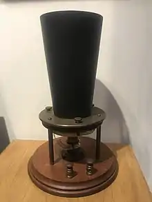 Он приказал своему помощнику Томасу Ватсону сделать аппарат для передачи звука, и на следующий день был готов прототип телефона. Аппарат, испытанный 3 июня 1875 года, работал очень плохо и не мог служить для устойчивой связи[8]. Томас Ватсон назвал этот телефон "горьким разочарованием", а историки связи и коллекционеры прозвали его виселицей за характерную форму.