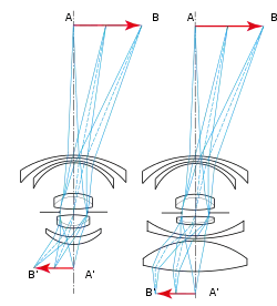 По этим причинам современные объективы для цифровых фотоаппаратов проектируются с расчётом на достижение телецентричности выходных пучков[7]. Добиваться их полной параллельности оптической оси не всегда целесообразно, но конструкторы стараются максимально уменьшить расхождение краевых лучей и их отклонение от нормали к поверхности матрицы. Это достигается за счёт усложнения оптической системы и увеличения её габаритов, но выигрыш по разрешающей способности всего оптического тракта оправдывает громоздкость. Ещё одним фактором, позволяющим усилить телецентричность, является большой диаметр задней линзы объектива. Для полной телецентричности он не должен быть меньше диагонали кадра, что учитывается, в том числе, при конструировании новейших байонетов с широким отверстием.
