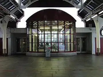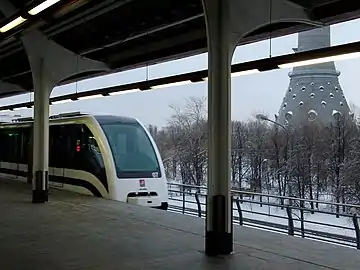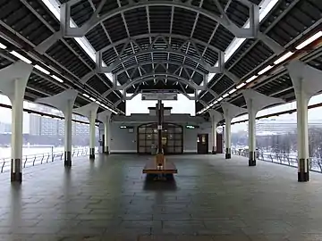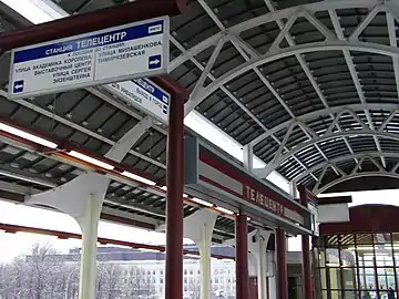 ![]() Общий вид станции на фоне здания телецентра ![]() Платформа станции | |