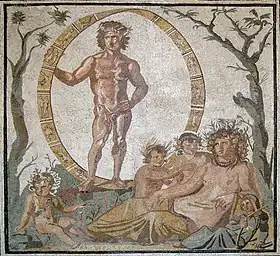 ![]() Теллус с четырьмя детьми, олицетворяющими четыре времени года мозаика III век н. э., Глиптотека, Мюнхен | |