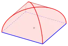 Верхняя половина бицилиндра является квадратным вариантом сомкнутого свода, куполовидного тела, опирающегося на выпуклый многоугольник, горизонтальные сечения которого являются уменьшенными копиями основания. Имеют место аналогичные формулы вычисления объёма и площади поверхности сомкнутого свода как соответствующих величин (с некоторыми рациональными коэффициентами) призмы с тем же основанием[8].