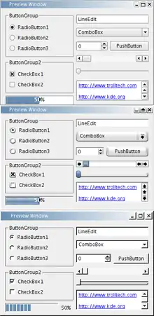 - виджеты (кнопки, списки, флажки-переключатели);