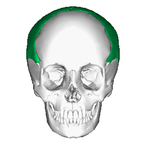 Сагиттальный край (верхний), márgo sagittális[4] — наиболее протяжённый. По этому краю правая и левая теменные кости соединяются друг с другом зубчатым сагиттальным швом, sutúra sagittális.