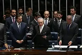 12 мая 2016 года, после начала процедуры импичмента президента Дилмы Русеф, назначен исполняющим обязанности президента Бразилии[4].