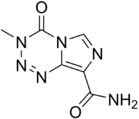 | Метаболизм | spontaneously hydrolyzed at physiologic pH to the active species, 3-methyl-(triazen-1-yl)imidazole-4-carboxamide (MTIC) and to temozolomide acid metabolite. |