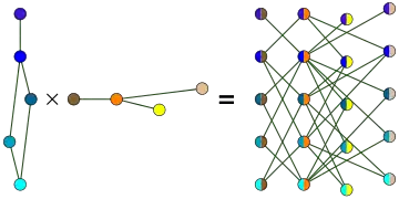 Матрица смежности графа является тензорным произведением матриц смежности и .
