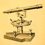 Теодоли́т — измерительный прибор для определения горизонтальных и вертикальных углов при топографических съёмках, геодезических и маркшейдерских работах, в строительстве и т. п. Основной рабочей мерой в теодолите являются лимбы с градусными и минутными делениями (горизонтальный и вертикальный). Теодолит может быть использован для измерения расстояний нитяным дальномером[1] и для определения магнитных азимутов с помощью буссоли.