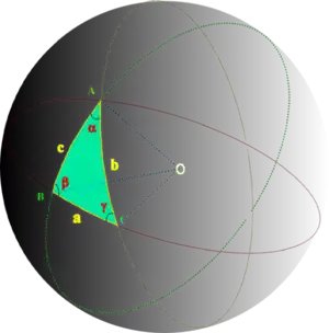 Таким образом, если стороны сферического треугольника малы по сравнению с радиусом сферы, мы можем заменить его на плоский треугольник с такими же по длине сторонами и на треть эксцесса меньшими углами и вычислять элементы плоского треугольника.