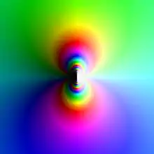 Цвет отражает аргумент, а яркость — модуль значения функции.