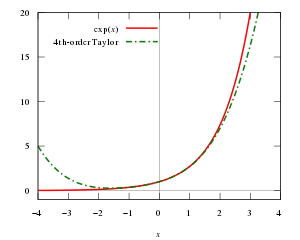 Таким образом, мы будем продолжать получать более хорошие приближения к f, если будем использовать многочлены всё более высокой степени. В общем, ошибка в приближении функции с помощью полиномов порядка k будет приближаться к нулю немного быстрее, чем приближается к нулю (x − a)k по мере того как x стремится к a.