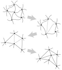 По формуле Эйлера для планарных графов граф G имеет 3n − 6 рёбер. Эквивалентно, если определить дефицит вершины v в графе G как 6 − deg(v), сумма дефицитов равна 12. Каждая вершина в графе G может иметь дефицит не выше трёх, так что имеется по меньшей мере четыре вершины с положительным дефицитом. В частности, мы можем выбрать вершину v с не более чем пятью соседями, которая отлична от a, b и c. Пусть G' образуется путём удаления вершины v из графа G и триангуляции грани f, полученной после удаления вершины v. По индукции, граф G' имеет комбинаторно изоморфное вложение с прямолинейными рёбрами, в котором abc является внешней гранью. Поскольку полученное вложение G было комбинаторно изоморфно G', удаление из него рёбер, которые были добавлены для получения графа G' оставляет грань f, которая теперь представляет собой многоугольникP с не более чем пятью сторонами. Для получения рисунка G с комбинаторно изоморфным вложением с прямыми рёбрами, вершина v должна быть добавлена в многоугольник и соединена отрезками с вершинами многоугольника. По теореме о картинной галерее существует точка внутри P, куда можно поместить вершину v, так что рёбра, соединяющие вершину v с вершинами многоугольника P, не пересекут другие рёбра многоугольника, что завершает доказательство.