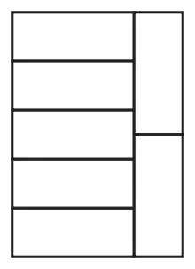 Третий результат Брёйна — если кирпич негармоничный, то существует некратная кирпичу коробка, которая может быть заполнена данным кирпичом. Упаковка кирпича в коробку даёт пример этого[1]. В двумерном случае третий результат де Брёйна легко показать. Коробку размерами и легко упаковать с помощью копий кирпича с размерами , уложенными сторона к стороне. По той же причине коробку с размерами и также легко упаковать копиями того же кирпича. Вращая одну из этих двух коробок так, что их длинные стороны станут параллельны и расположив эти две коробки сторона-к-стороне, получим упаковку кирпича в бо́льшую коробку с размерами и . Эта бо́льшая коробка кратна кирпичу тогда и только тогда кирпич гармоничен.