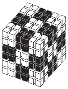 Де Брёйн доказал это утверждение после того, как его семилетний сын не смог уложить блоки размера в куб [2][3]. Куб имел объём, равный объёму блоков, но только блоков можно в него уложить. Чтобы это понять, разобьём куб на меньших кубов, раскрашенных поочерёдно в белый и чёрный цвет, и заметим, что такое разбиение имеет единичных кубиков (ячеек) одного цвета больше, чем другого, в то время как любая упаковка блоков в куб должна иметь равное число ячеек каждого цвета[4]. Теорема де Брёйна доказывает, что совершенная упаковка с такими величинами сторон невозможна. Теорема применима и к другим размерам кирпичей и коробок.