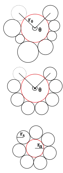 Каждый из этих шагов можно выполнить с помощью простых тригонометрических вычислений, и как указали Коллинз и Стефенсон (Collins, Stephenson), система радиусов сходится к единственной неподвижной точке, для которой все покрывающие углы равны 2π. После того, как система радиусов сошлась, окружности можно разместить по одной, на каждом шаге используя положение и радиусы двух соседних окружностей для вычисления центра каждой успешной окружности.