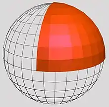 - Пример. Одна вершина треугольника на сфере — северный полюс. Этот угол может иметь значение до 180°. Две другие вершины лежат на экваторе, соответствующие углы равны 90°.