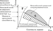 является метастабильным. Это означает, что при возникновении малых возмущений свободный поток сохраняется, т.е. является устойчивым относительно малых возмущений. Однако для больших возмущений свободный поток оказывается неустойчивым и происходит F → S фазовый переход к синхронизованному потоку.