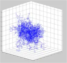 Оригинальный текст (англ.)[показатьскрыть]An actual case suggested the following: An equal number of white and black balls of equal size are thrown into a rectangular box, what is the probability that there will be contiguous contact of white balls from one end of the box to the opposite end. As a special example, suppose there are 30 ball in the length of the box, 10 in the width, and 5 (or 10) layers deep.