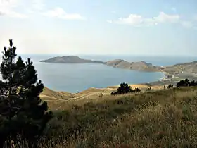 ![]() Вид с Тепе-Оба на Двуякорную бухту. |