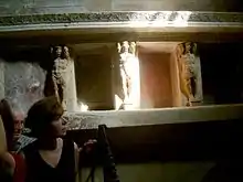 Интересный пример тепидария был обнаружен на раскопках в Помпеях: его закрывал полукруглый цилиндрический свод, украшенный рельефом на штукатурке, а вокруг помещения расположились ряды квадратных проёмов или ниш, разделённых теламонами (колоннами в форме мужской статуи).