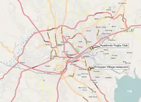 ![]() на карте отмечены два взрыва в Кампале | |