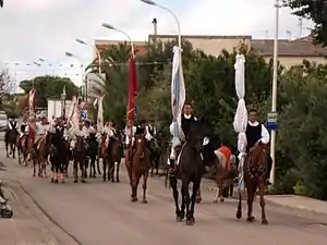 Вторая половина дня посвящена конным соревнованиям. На поле за селом начинаются «скачки с кольцами»: огораживается прямолинейная трасса и конники по очереди галопом проходят её на время, пытаясь попасть короткой палкой в каждое из трёх колец, подвешенных на протяжении дистанции над головой всадника. Эти игры, происходящие от упражнений кавалеристов с холодным оружием, популярны на Сардинии со времён арагонского владычества. Праздник завершается вечером песнями и танцами на площади[14].