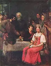 В 1815 году М. И. Теребенёв был отмечен большой золотой медалью за дипломную работу «Русская крестьянская свадьба», которая была приобретена «для себя» императрицей Марией Фёдоровной и долгое время находилась в картинной галерее Константиновского дворца[7].
