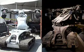 - Когда прототип T-800 преследует Джона, Кайла и Кроху и разрывает вставшего на пути повреждённого T-600 пополам, он нагибается и поднимает его пулемёт, чтобы открыть огонь по целям.