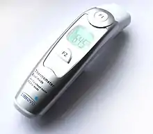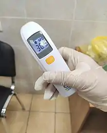 Инфракрасный термометр позволяет измерять температуру без непосредственного контакта с человеком. В 2014 году Россия подписала Минаматскую конвенцию о ртути, и к 2030 году Россия откажется от производства ртутных термометров.[5]В некоторых странах уже давно имеется тенденция отказа от ртутных термометров в пользу инфракрасных не только в медицинских учреждениях, но и на бытовом уровне.