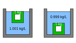 Поплавки по-разному наполнены жидкостью таким образом, что их средняя плотность различна: самая маленькая плотность у верхнего, самая большая — у нижнего, но у всех близка к плотности воды, отличаясь от неё незначительно. С понижением температуры воздуха в помещении соответственно понижается температура воды в сосуде, вода сжимается, и плотность её становится больше. Известно, что тела, плотность которых меньше плотности окружающей их жидкости, всплывают в ней. При понижении температуры в помещении плотность жидкости в цилиндре увеличивается, и шарики поднимаются один за другим, при повышении — опускаются. Такой эффект достигается за счет очень высокой точности изготовления термометров. Все шарики калибруются по температуре всплытия с интервалом 0,4 °С. Диапазон температур, измеряемых термометром, находится в районе комнатной температуры: 16-28°, шаг: 1 °С. Текущее значение температуры определяется по нижнему из всплывших шариков.