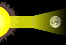 - Объём принимаемой солнечной энергии[7]. Для проведения работ по терраформированию планет необходим достаточный объём солнечной энергии для прогрева поверхности и атмосферы планеты. Прежде всего, освещённость планеты Солнцем (равно как и любой другой родительской звездой) должна быть достаточной для прогрева атмосферы планеты как минимум до достижения искусственного парникового эффекта для поддержания температур на поверхности, достаточных для устойчивого нахождения воды в жидком состоянии. Освещённость также необходима для осуществления воспроизводства энергии с помощью фото- или термопреобразователей и выполнения задач по терраформированию. С точки зрения освещённости зона, в которой есть необходимый объём солнечной энергии и в которой находятся подходящие планеты, достигает орбиты Сатурна, а следовательно в более глубоких областях космоса терраформирование в настоящее время невозможно. В будущем, при расширении Солнца, уровень энергии, достаточный для кратковременного (несколько сот миллионов лет) поддержания жизни, окажется в пределах орбиты Плутона или же даже в ближних областях Пояса Койпера.