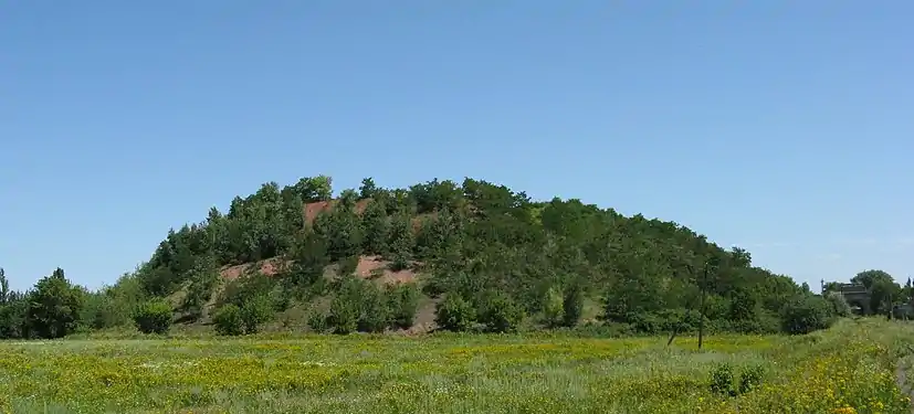 Террикон шахты 15 БИС расположен в г. Снежное Донецкой области. На терриконе проведено озеленение (рекультивация) — высажена акация