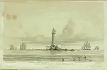 Капитан Джеймс Хорсбург (1762—1836)[72] — шотландский гидрограф Британской Ост-Индской компании, подготовивший множество карт и лоций Ост-Индии, Китая, мыса Доброй Надежды и других промежуточных портов[73]. Торговцы и моряки считали, что строительство одного или нескольких маяков будет достойной данью ему, и уже в ноябре 1836 года Педра-Бранка был предложен в качестве одного из предпочтительных мест[74]. К 1844 году предпочтение было отдано Внешнему острову Романия или Пик Рок. В ноябре 1844 года губернатор Стрейтс-Сетлментс Уильям Джон Баттеруорт написал об этом султану и Теменггунгу Джохора. Его письма не были найдены, но существуют английские переводы ответов, датированные 25 ноября 1844 года[75]. Султан написал: