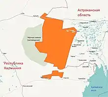 Территориальный спор между Калмыкией и Астраханской областью затрагивает три обособленных участка территории общей площадью 390 000 га (участки площадью 3271 км², 214 км² и 486 км², всего 3983 км²[1]).