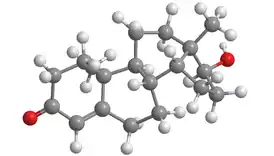 Тестостеро́н (от «тестикулы», «стерол» и «кетоны»[1]) — основной половой гормон, андроген. Синтезируется из холестерина клетками Лейдига семенников у мужчин, а также в небольших количествах яичниками у женщин и корой надпочечников и у мужчин, и у женщин. Является прогормоном, внутриклеточно превращается в эстрадиол под действием фермента ароматаза или дигидротестостерон под действием фермента 5-α-редуктаза. Тестостерон через метаболит дигидротестостерон отвечает за вирилизацию у мальчиков и андрогенизацию у девочек.