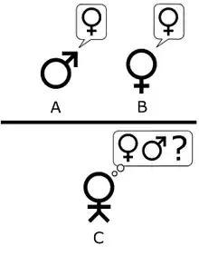 Тьюринг, как мы уже знаем, описал простую игру для вечеринок, которая включает в себя минимум трёх игроков. Игрок А — мужчина, игрок В — женщина и игрок С, который играет в качестве ведущего беседу, любого пола. По правилам игры С не видит ни А, ни В и может общаться с ними только посредством письменных сообщений. Задавая вопросы игрокам А и В, С пытается определить, кто из них — мужчина, а кто — женщина. Задачей игрока А является запутать игрока С, чтобы он сделал неправильный вывод. В то же время задачей игрока В является помочь игроку С вынести верное суждение.