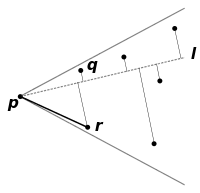 Рассмотрим отдельный конус и нам нужно указать другой луч, исходящий из , который мы обозначим . Для любой вершины внутри конуса мы рассмотрим ортогональную проекцию каждой точки на луч . Пусть вершина обладает наименьшей такой проекцией, тогда в граф добавляется ребро . Это главное отличие от графов Яо, которые всегда выбирают ближайшую к вершину. В примере на рисунке граф Яо включил бы ребро .