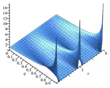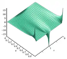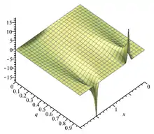 Это решение в виде тета-функции является 1-периодическим по x, и при оно стремится к периодической дельта-функции или гребню Дирака в смысле распределений