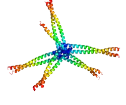 Существует как димерный белок, мономеры соединены друг с другом дисульфидными связями. Мутации белка по цистеинам, образующим межмолекулярную связь, приводят к функциональной инактивации белка[3].