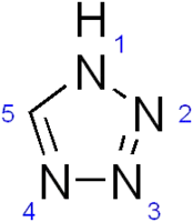 Тетразол — пятичленный ароматический гетероцикл с четырьмя атомами азота (CH2N4). Бесцветные листовидные кристаллы, растворимые в воде, ацетоне, этаноле.