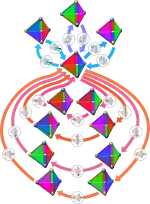 ![]() В триакистетраэдре одна полная грань является фундаментальной областью. Другие тела с той же симметрией можно получить путём изменения ориентации граней. Например, сплющивание некоторого подмножества граней, чтобы образовать одну грань, или заменой одной грани группой граней, или даже кривой поверхностью. |