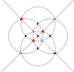 ![]() Тетраэдральная группа вращений T с фундаментальной областью. Для триакистетраэдра (см. ниже) область является полной гранью |