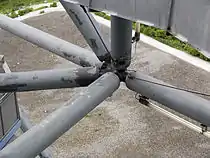 Тетраэдр построен из стальных труб общей массой 210 тонн и общей длиной 1,5 км. Структура Тетраэдра напоминает треугольник Серпинского.
