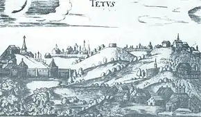 Город Тетюши известен со времени Казанского царства. Указан в отчете А.Дженкинсона о его путешествии по Волге к Каспийскому морю в 1558 г. как Petowse в 20 лигах ниже устья реки Камы. Основан между 1574 и 1578 гг. (по другим данным — между 1555 и 1557 гг.); тогда же около города было построено сторожевое укрепление — Карлинская черта или «Старая Тетюшская засека»[7], следы которого сохраняются и до настоящего времени[8]. С середины XVII века Тетюши утрачивают своё военное значение, так как их роль берёт на себя построенный в 1648 году Симбирск, а вместо Тетюшской засеки устраивается более совершенная — «Симбирская черта», куда в 1649 году были переселены 50 конных казаков, где они основали Тетюшскую слободу (ныне село Тетюшское)[9].